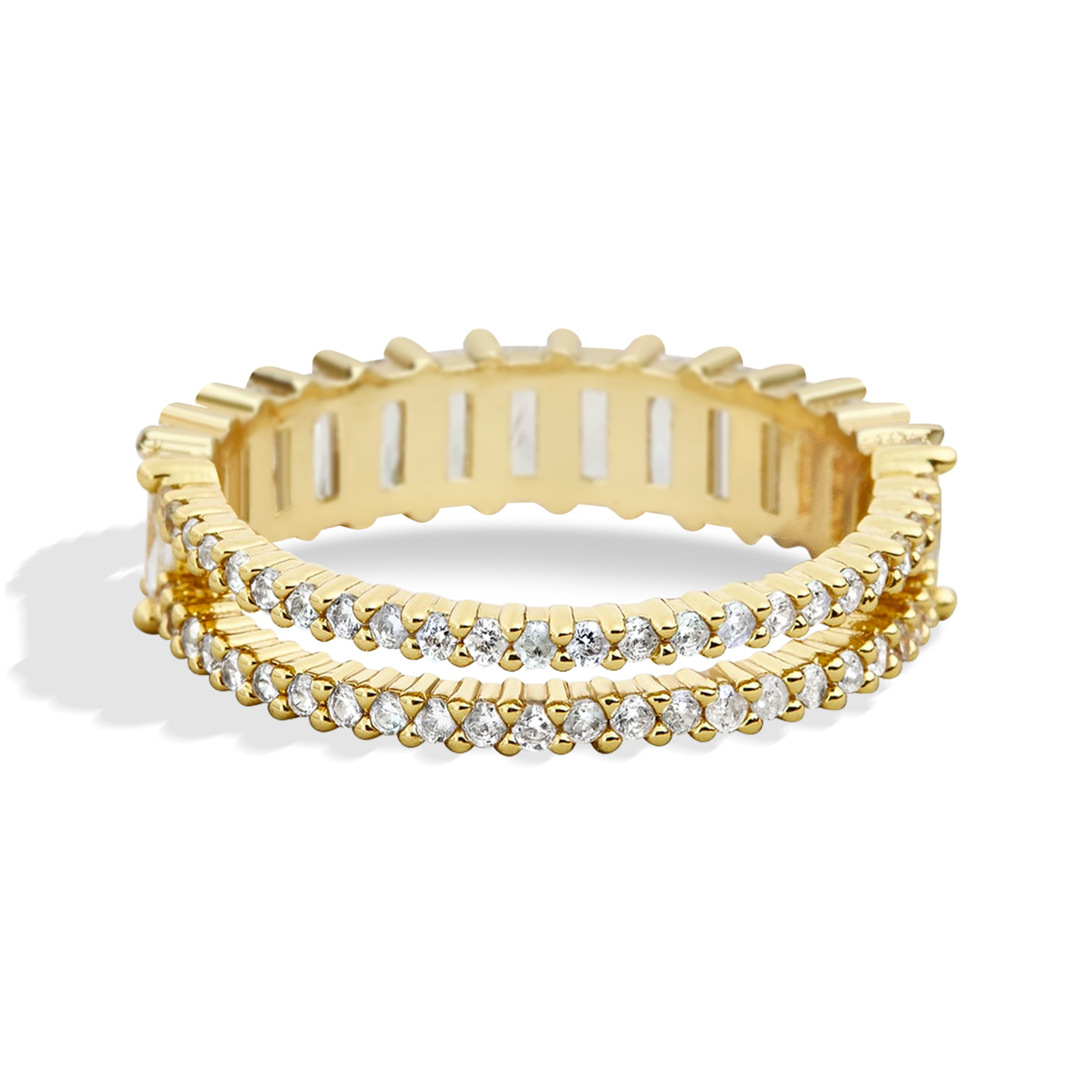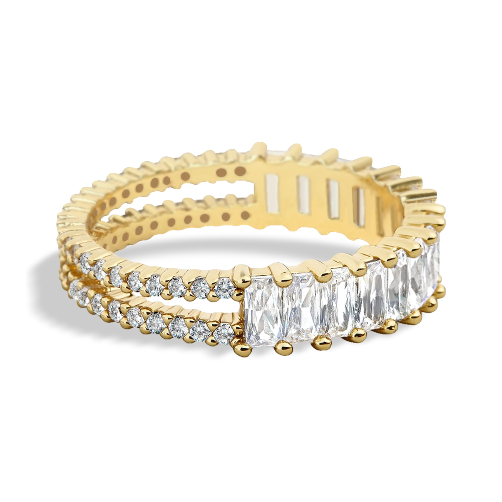 Fashion Classic 18K Gold Plated Titanium Steel Women Stacking Ring Best Gifts Couples Valentine’s Day(Half baguette-Gold)
